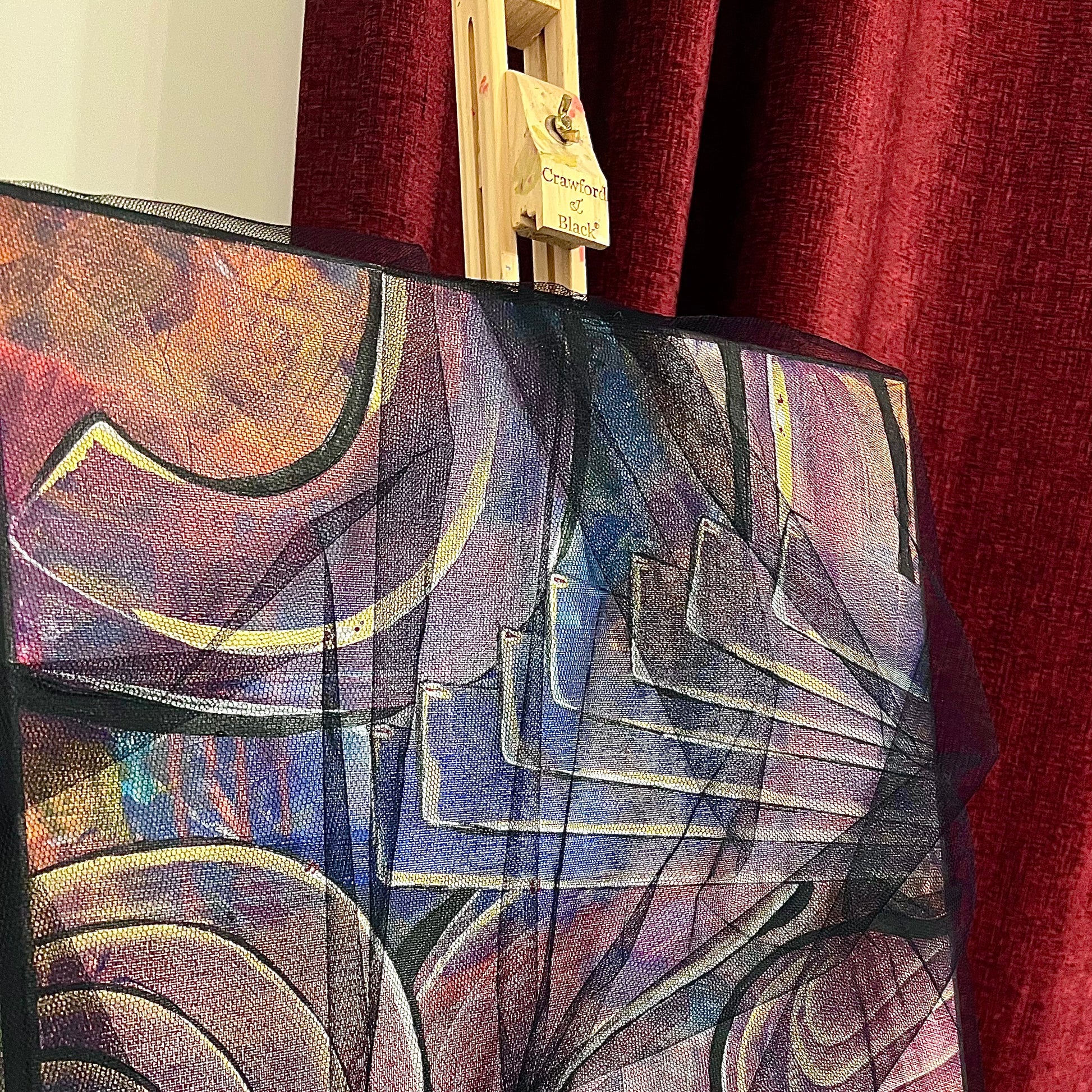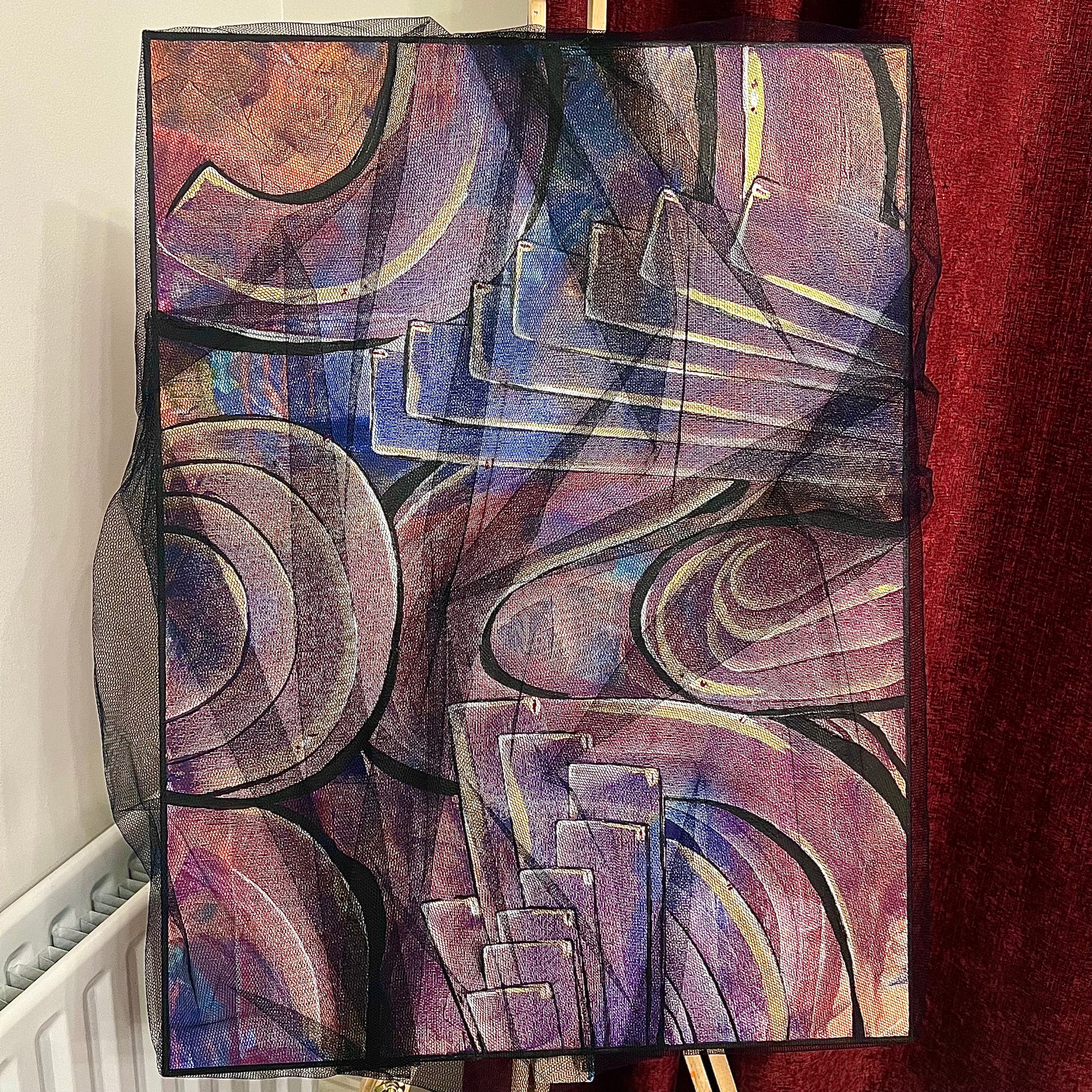 Mixed Media - Canvas featuring three-dimensional sculpted black net.